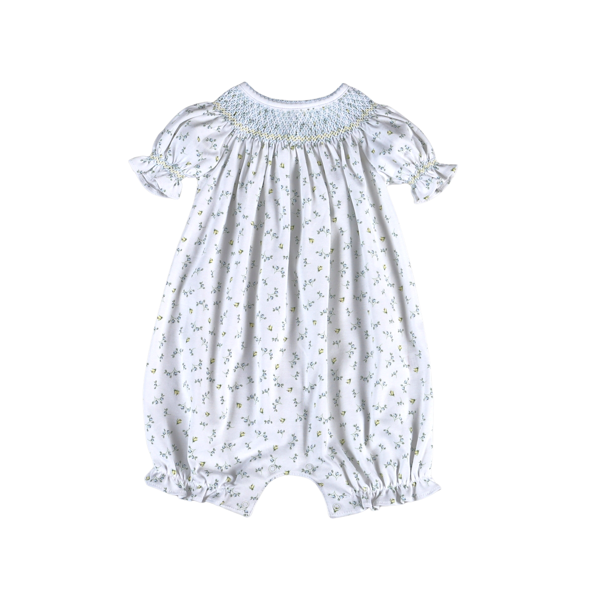 Mia Blue Floral Pima Hand Smocked Bishop Bubble